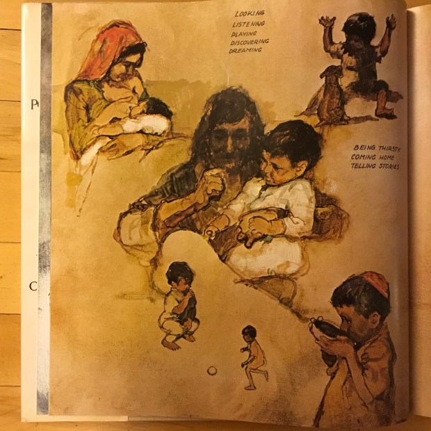 That afternoon in our hour of conversation, my spiritual director noticed how worn- out I seemed. “You’re thinking too much – we need to change up the dance! New music!” she announced, pulling a large, slender hardcover off the bookshelf. “Don’t read too much or try to contemplate the stories,” she said, referring to the five scripture readings about Jesus’ birth and coming of age that were slated for five prayer sessions in the next 24 hours. “Just skim, and look at these.”